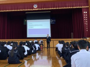 職員紹介、探究学習アドバイザーの紹介、1年生の行事説明、探究Ⅱの発表などなど、探究科学科の対面式は内容盛りだくさん。
