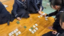 令和7年3月11日(火)午後、本校体育館にて校内百人一首大会が実施されました。 1・2年生全員が参加し、2試合が行われました。国語の授業を使って練習を重ね、1年生でも上の句勝負ができるようになるまで成